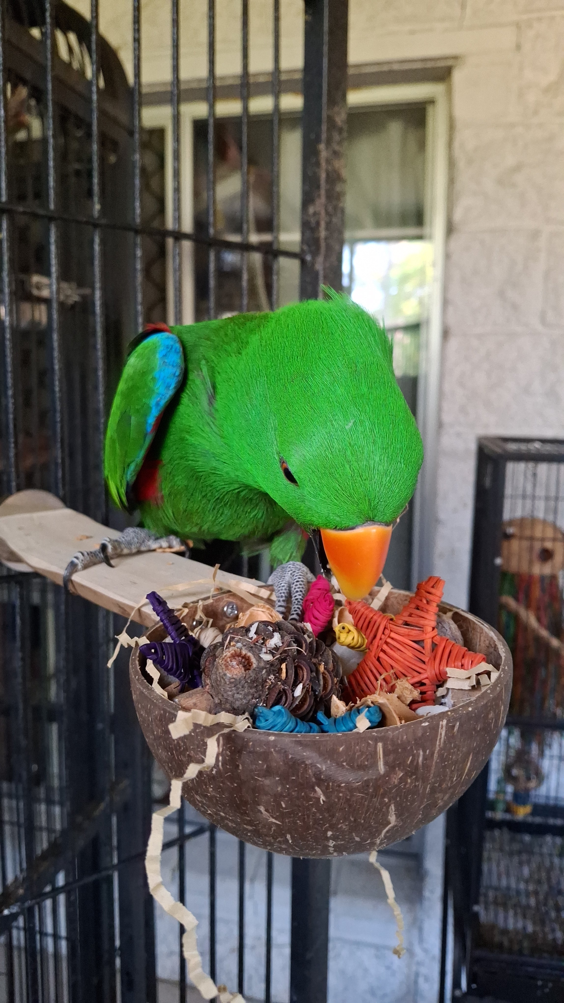 Feed, forage, and play — all in one! The Java Platform Feeder combines a sturdy perch with a half-coconut bowl that’s perfect for treats, dry foods, or a little foraging challenge. Made from durable, bird-safe Java wood, its natural textures encourage healthy foot exercise while looking beautiful in any cage. Quick to attach, easy to move, and endlessly engaging — it’s enrichment your bird will love every day.