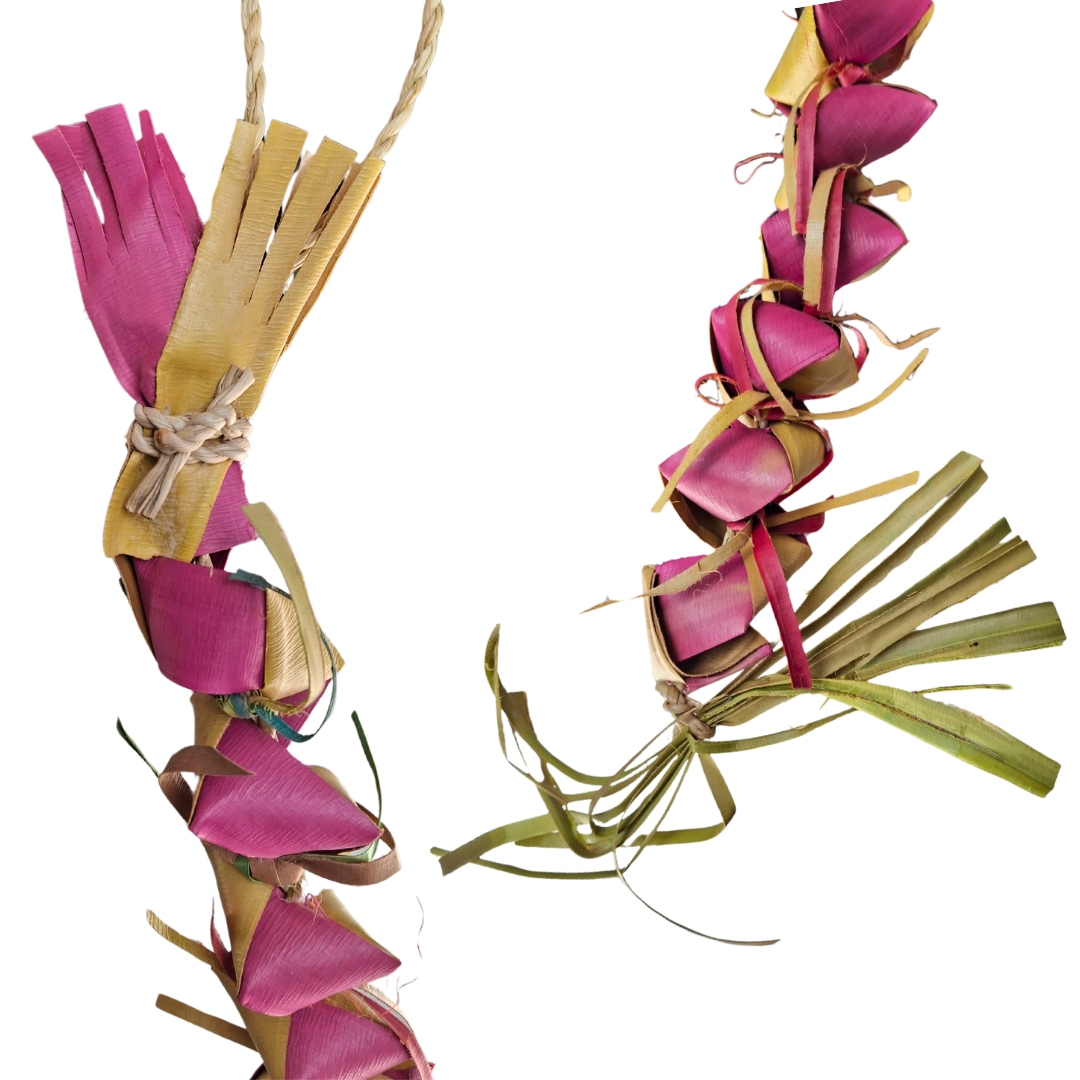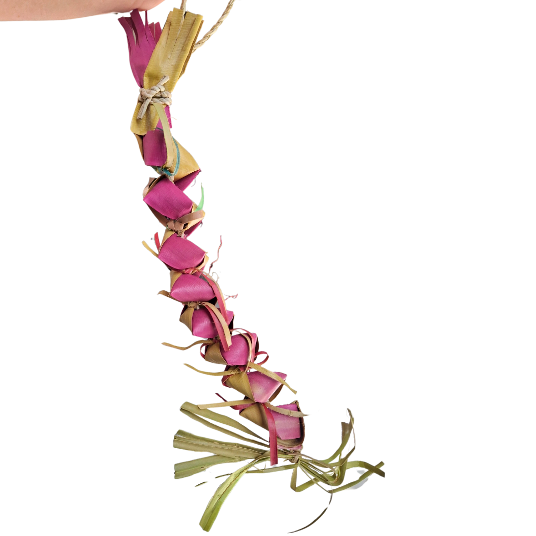 The Tickles is a joyful burst of colour and texture, designed to keep little beaks and busy minds happily entertained. Handwoven from natural palm leaf and dyed with bird-safe, vegetable-based dye, it’s a safe and enriching addition to your small bird’s play space.